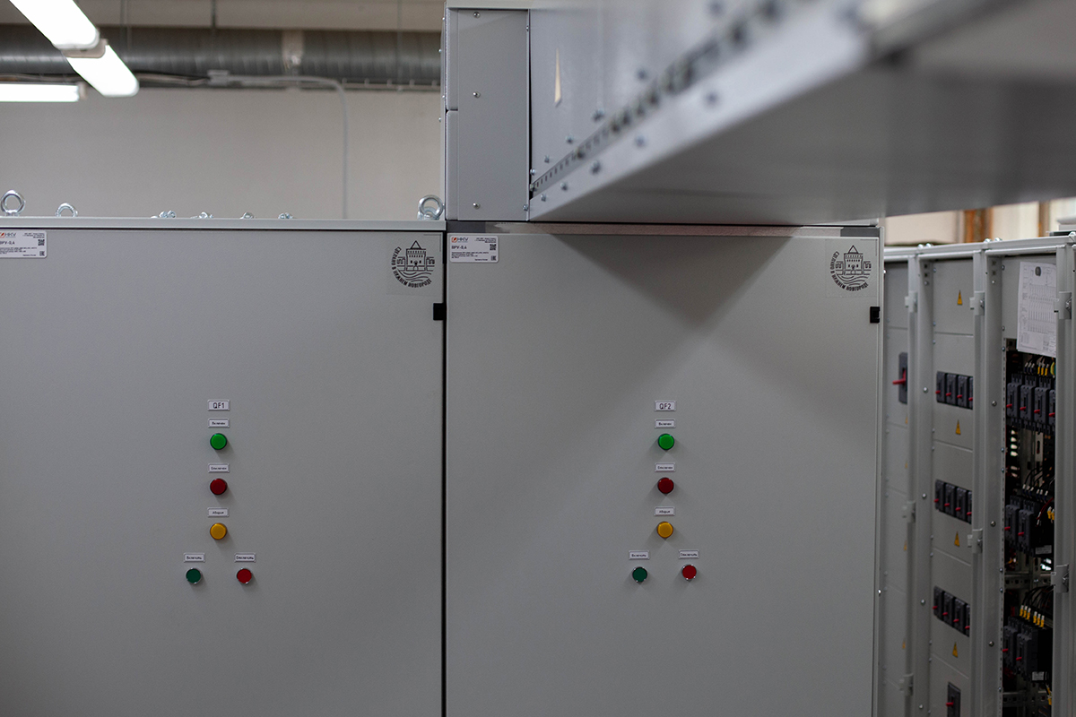 Наша компания успешно реализовала проект по изготовлению и сборке шкафов трансформаторной подстанции, оснащенных шинным мостом, для АО ПКО «Теплообменник». Нашей целью было обеспечение надежного и эффективного распределения электроэнергии на предприятии. Решением стали вводные распределительные устройства (ВРУ), собранные с учетом всех специфических требований "Теплообменника". Подключение шинного моста к трансформатору осуществлено гибкими шинами нашего производства. Эти гибкие шины обеспечивают не только надежное соединение, но и компенсируют вибрации, возникающие в процессе работы трансформатора. Казалось бы, мелочь, но именно из таких мелочей складывается долговечность и безотказность всей системы. В шкафах ВРУ и РУ реализованы современные решения по защите и контролю, что повышает безопасность эксплуатации и предотвращает аварийные ситуации.
